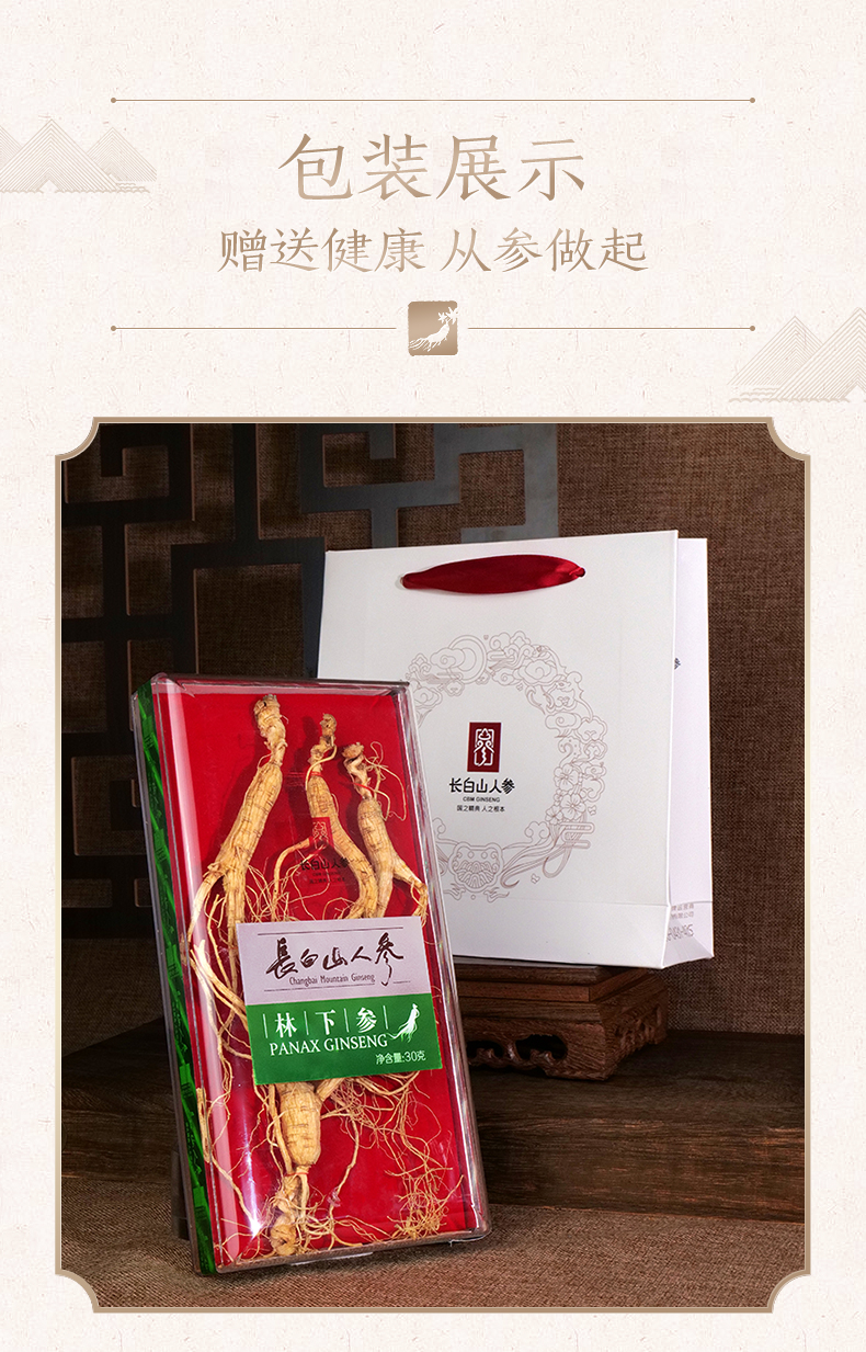 长白山人参 林下参30克盒装健康礼品煲汤煮粥补品