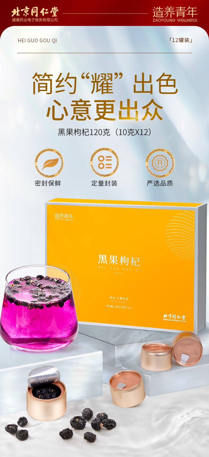 北京同仁堂黑果枸杞-120克(10克×12)正品枸杞子正宗茶泡水