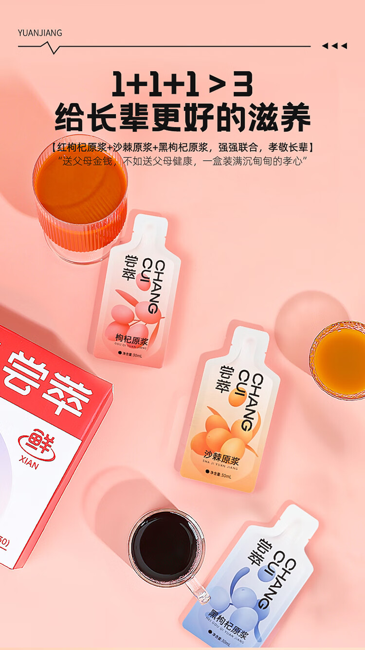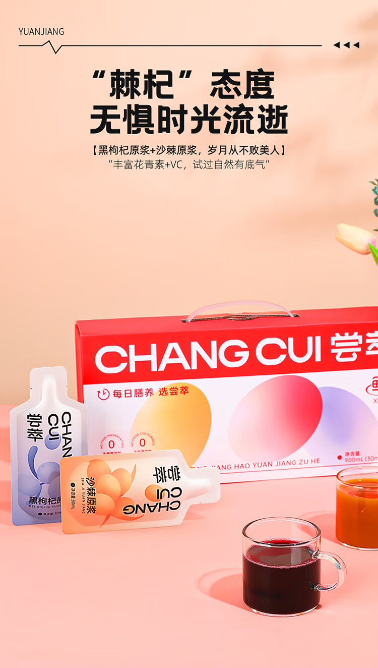 尝萃900ml(30袋)量贩装黑枸杞沙棘原浆组合T