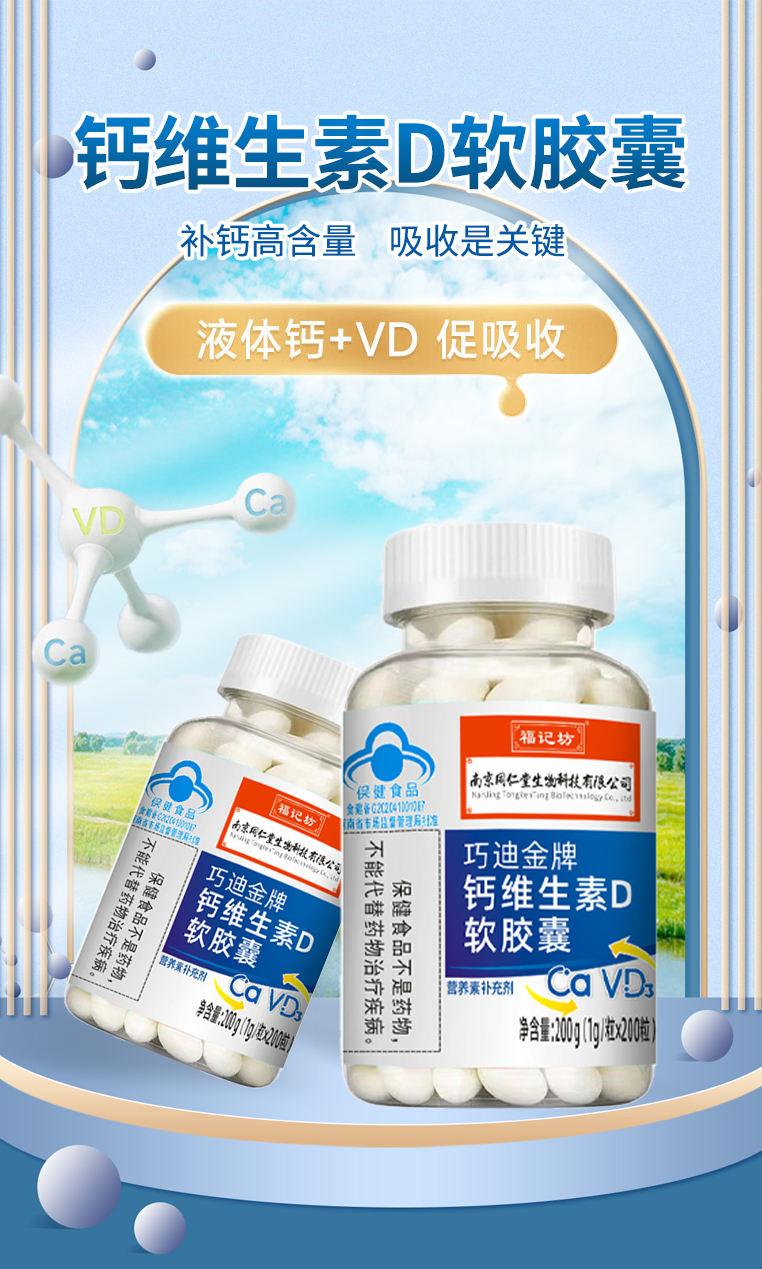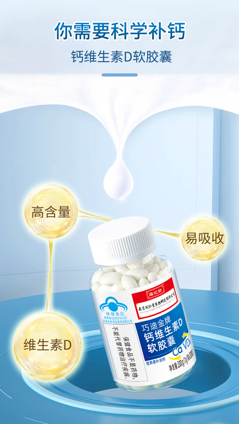 (1瓶装)南京同仁堂钙维生素D软胶囊200g(1.0g*200盒)*1瓶 液体钙维生素D软胶囊成人中老年补钙孕妇官方正品