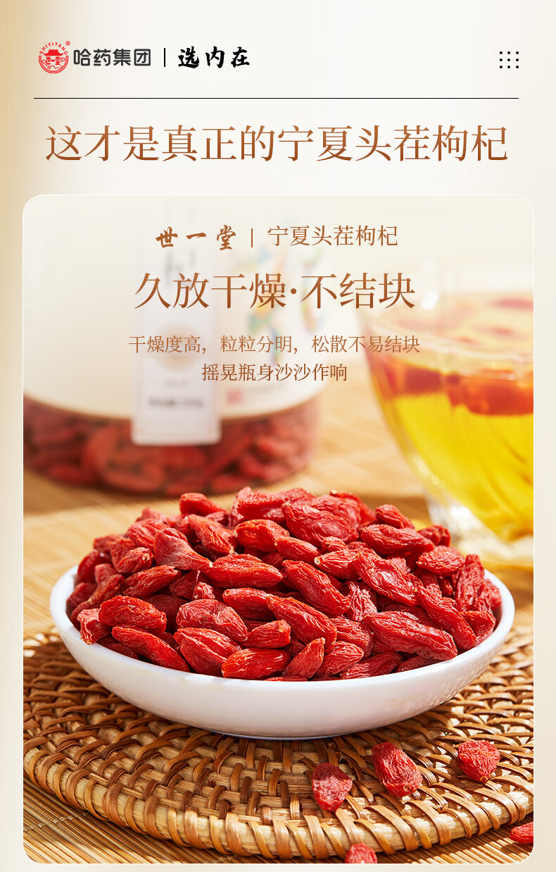 哈药(世一堂)红枸杞子特优级 宁夏特产 罐装258g*2罐 大果苟杞子免洗头茬红枸杞子枸杞茶 无硫熏 【头茬枸杞】宁夏红枸杞