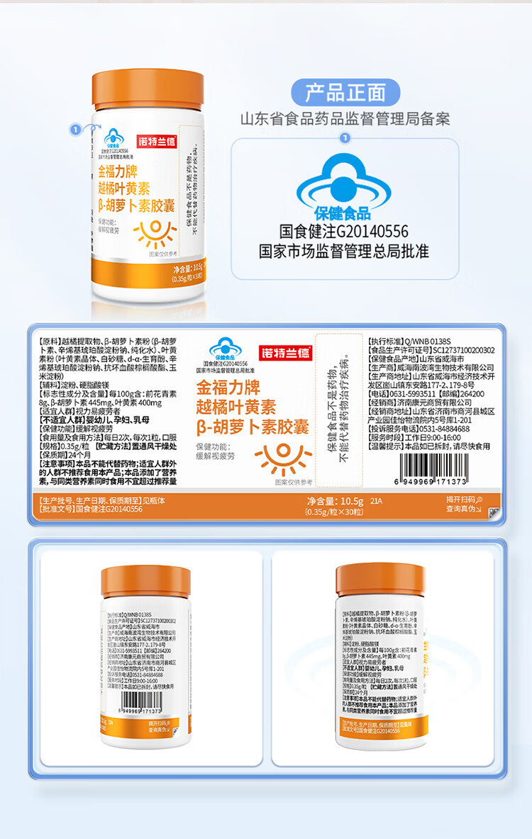 诺特兰德 金福力牌越橘叶黄素β-胡萝卜素胶囊0.35克*30粒/瓶