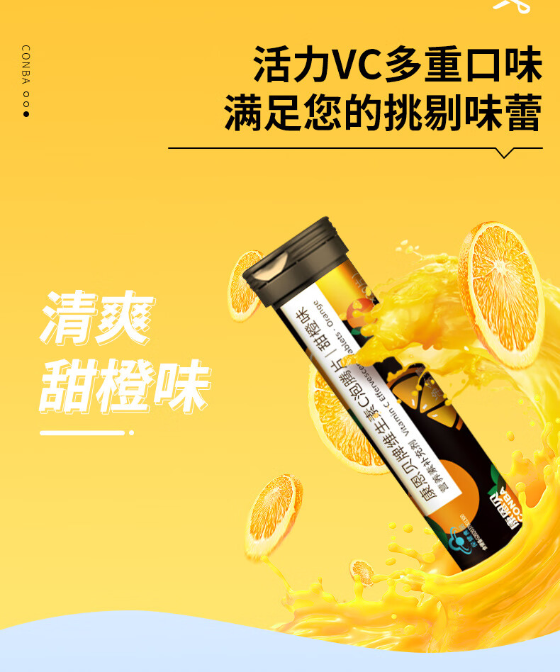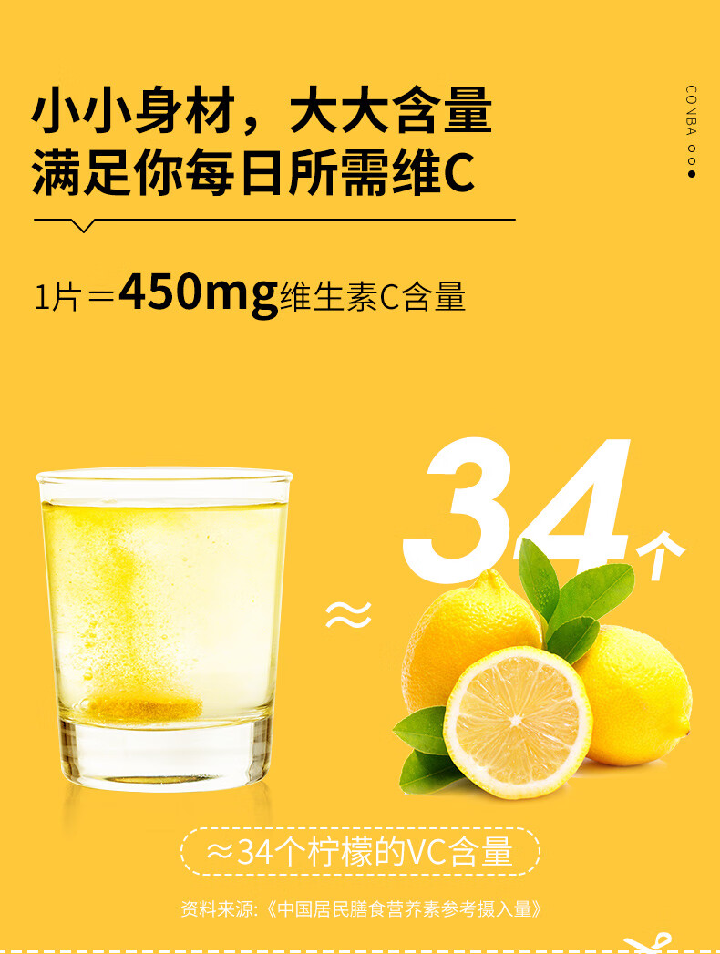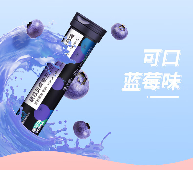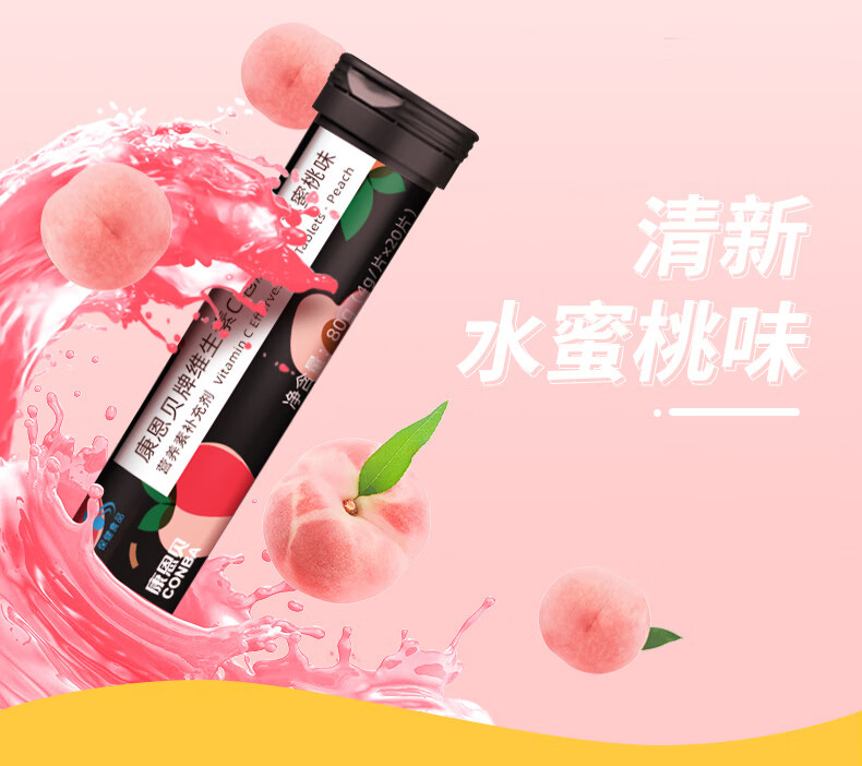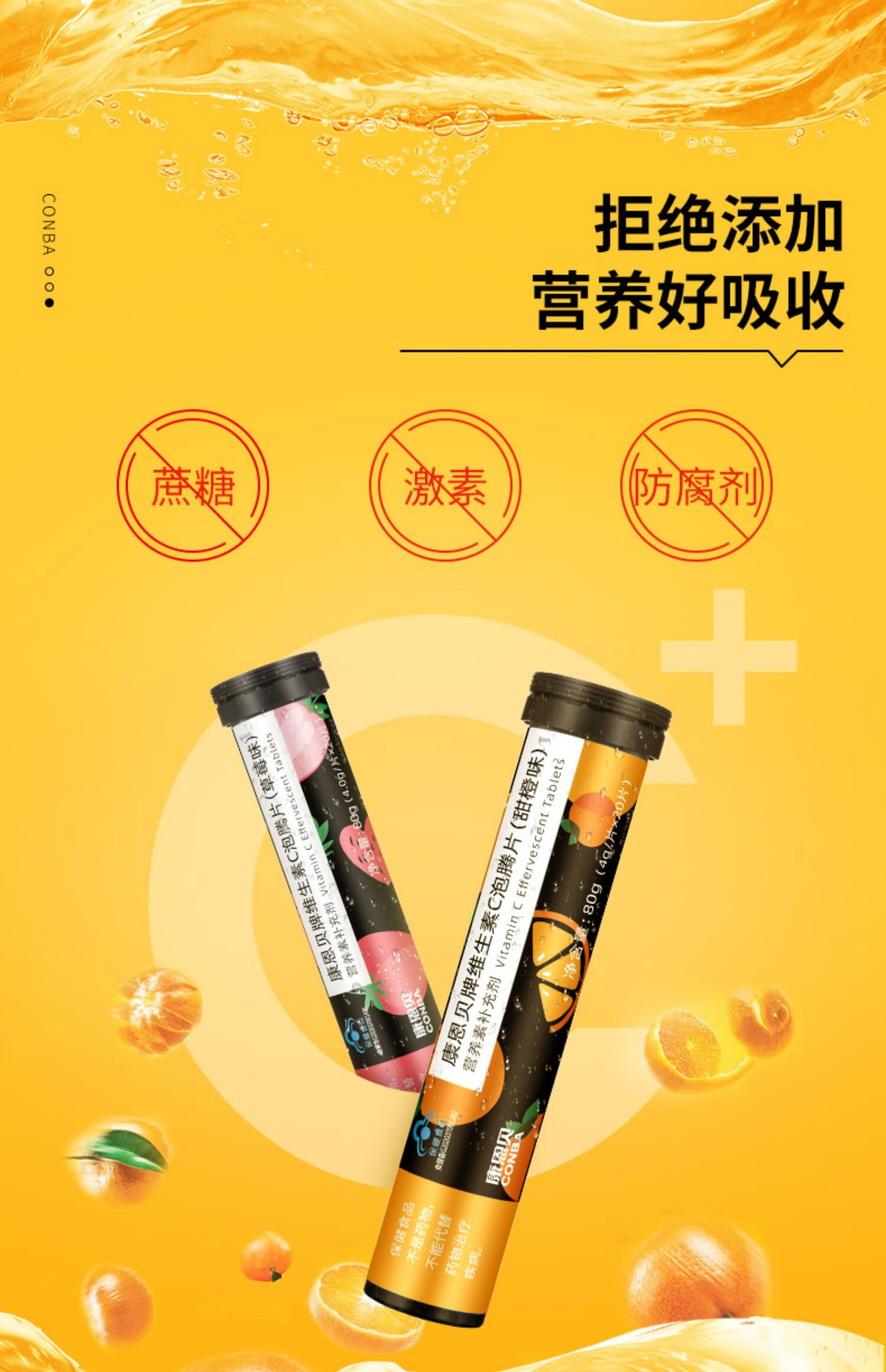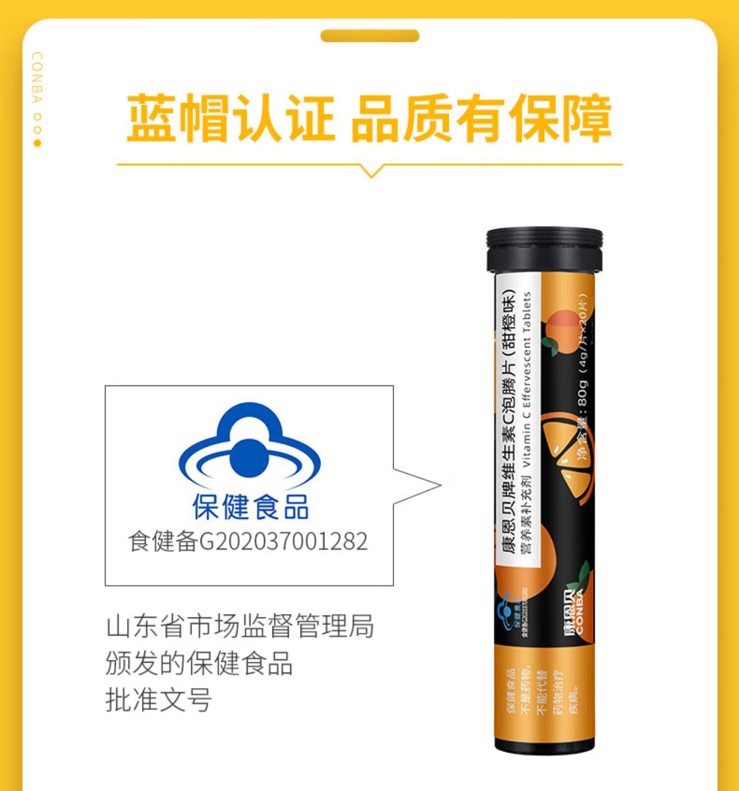 康恩贝维C泡腾片蓝帽成人水蜜桃味泡腾片80g(4g/片*20片)