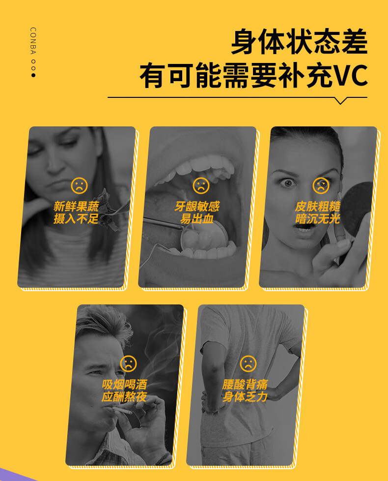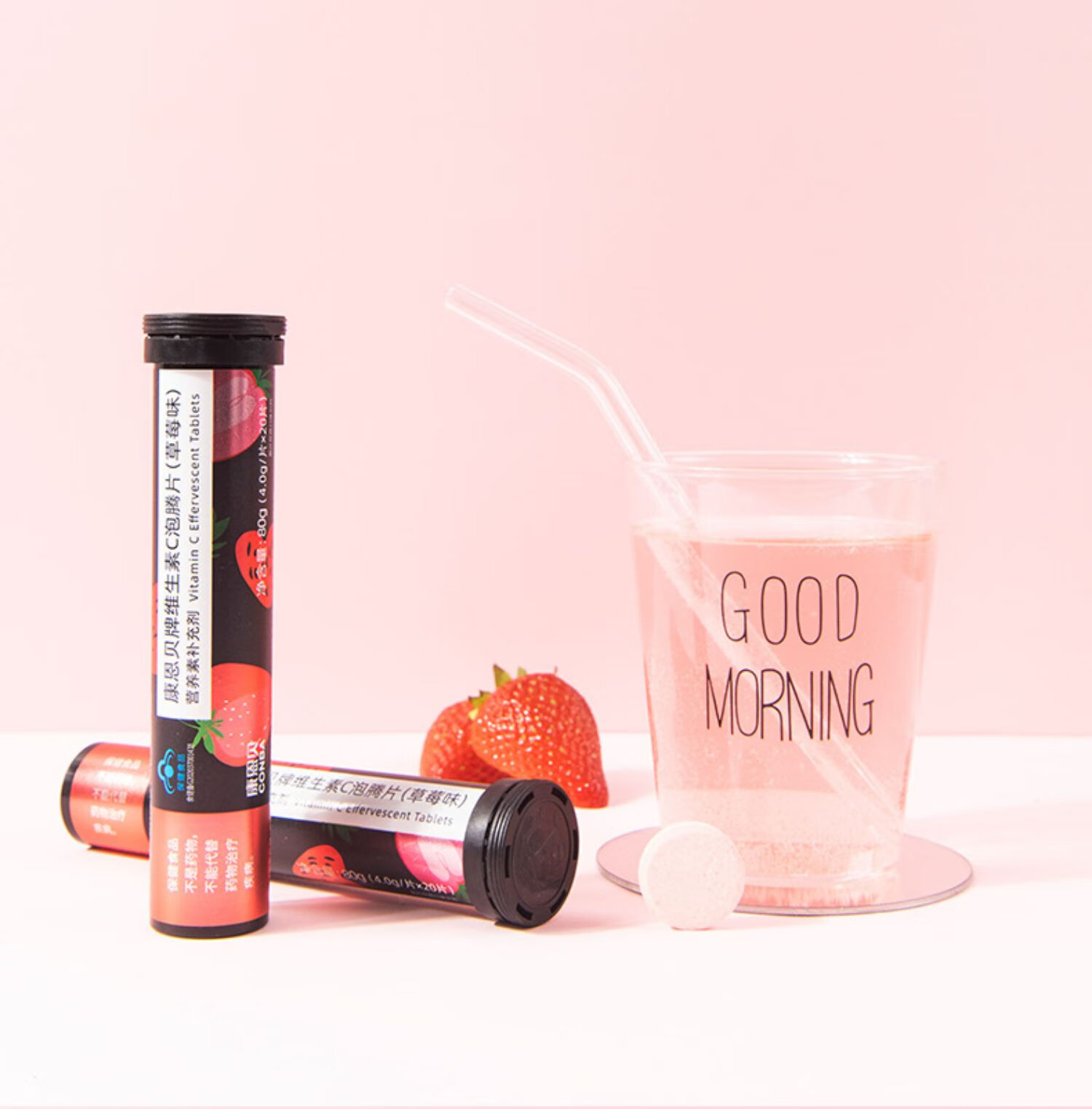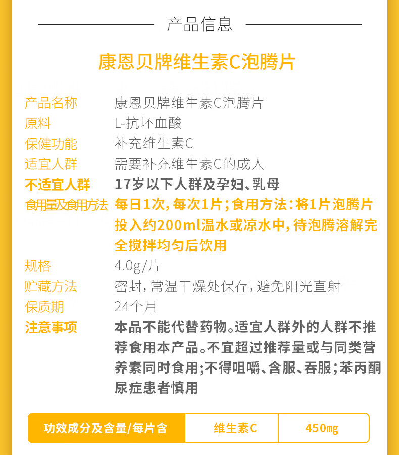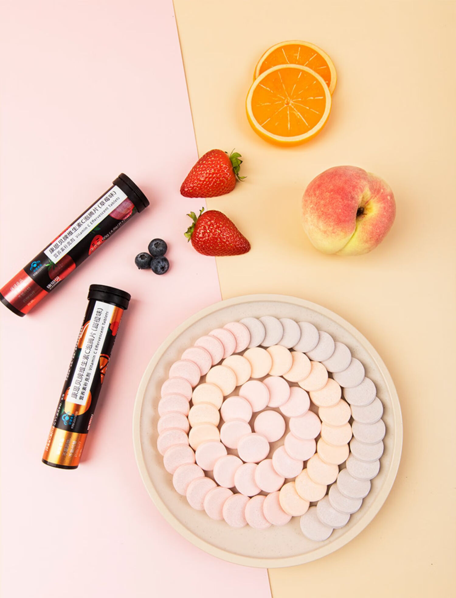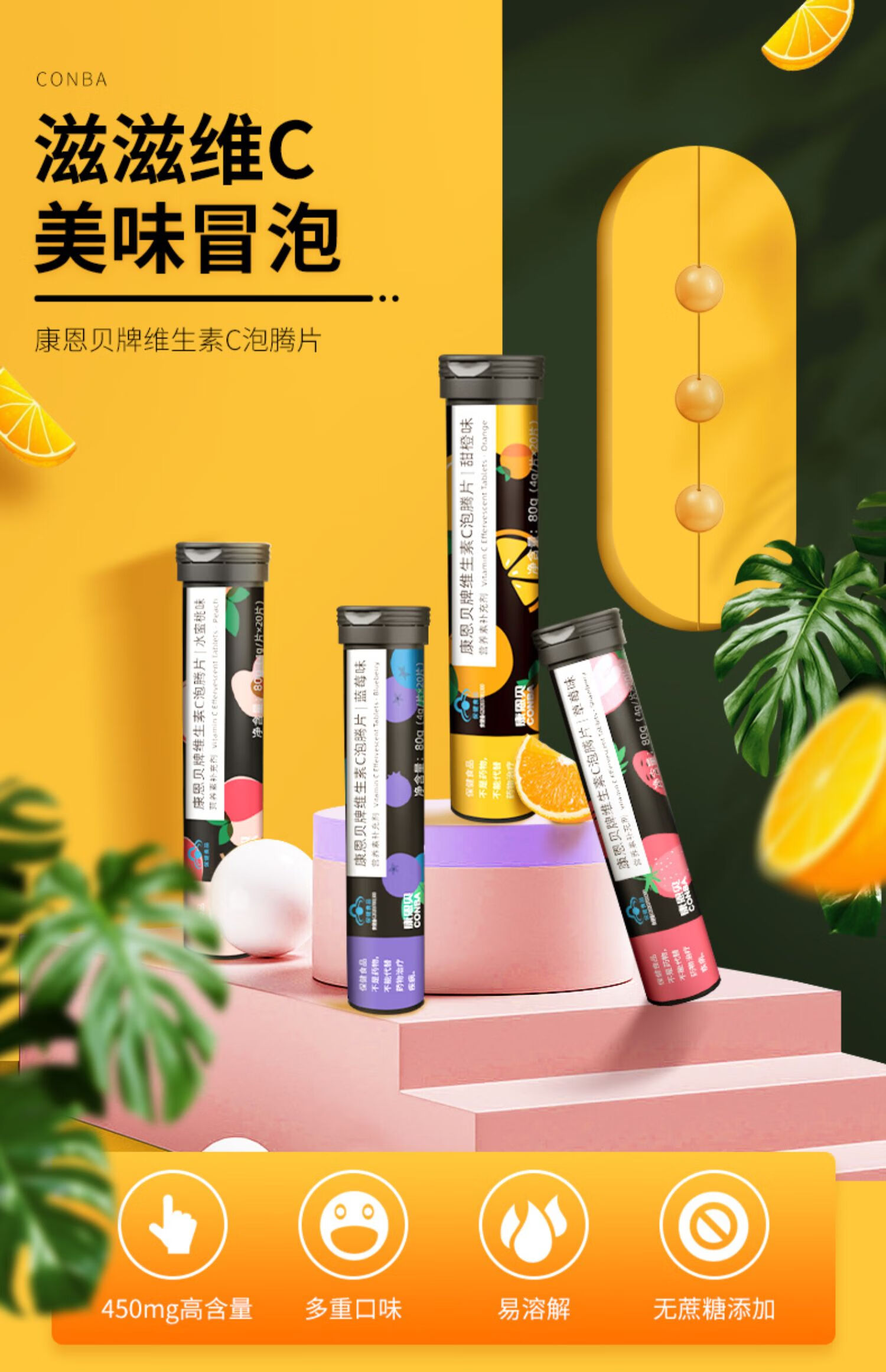 康恩贝维C泡腾片蓝帽成人水蜜桃味泡腾片80g(4g/片*20片)