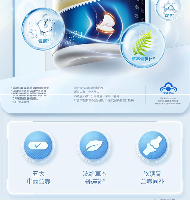 【到手250粒组合装】汤臣倍健健力多氨糖软骨素钙片100片彩盒装*2盒+送氨糖25粒*2 补软骨护关节中老年成人缺钙补钙氨基葡萄糖
