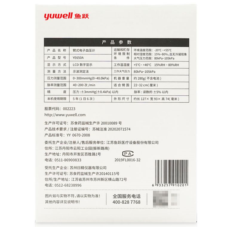 • 生产企业:江苏鱼跃医疗设备股份有限公司