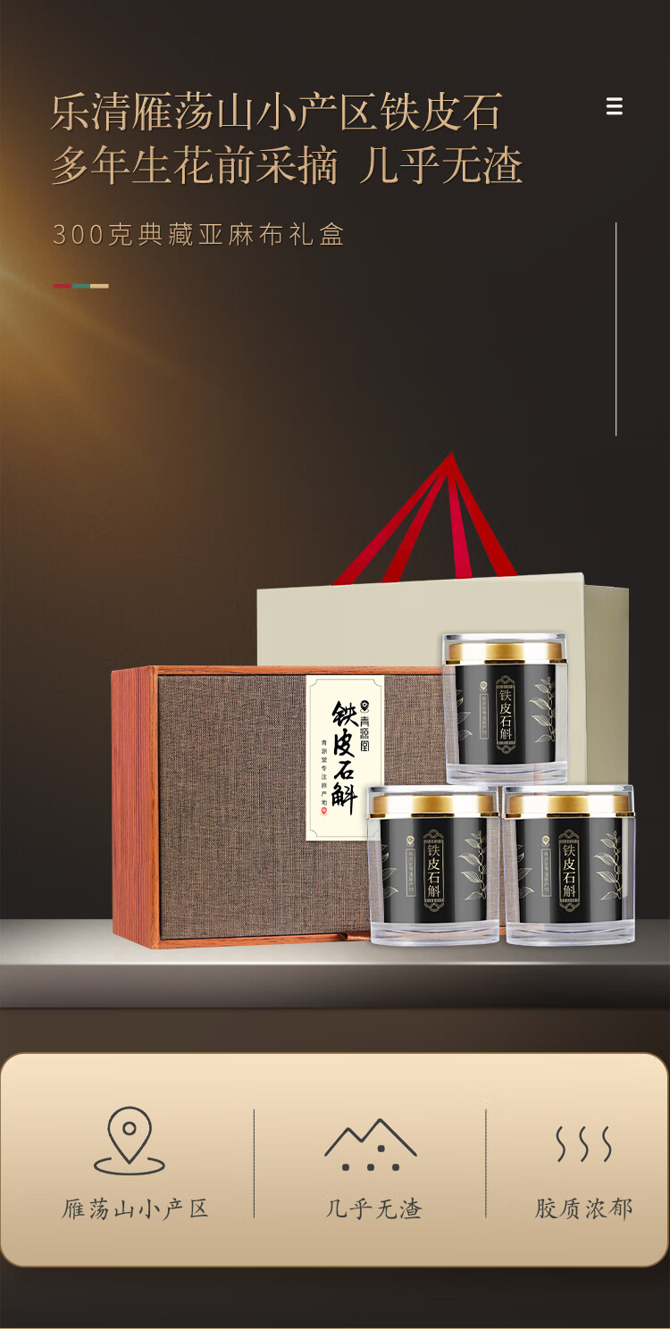 北京同仁堂 青源堂 乐清铁皮石斛300克礼盒