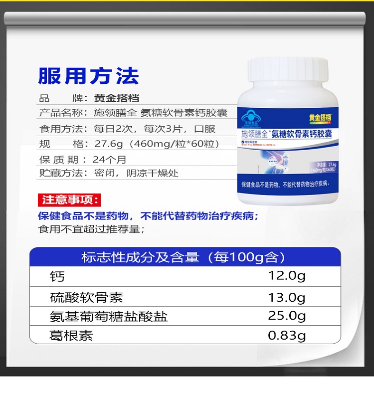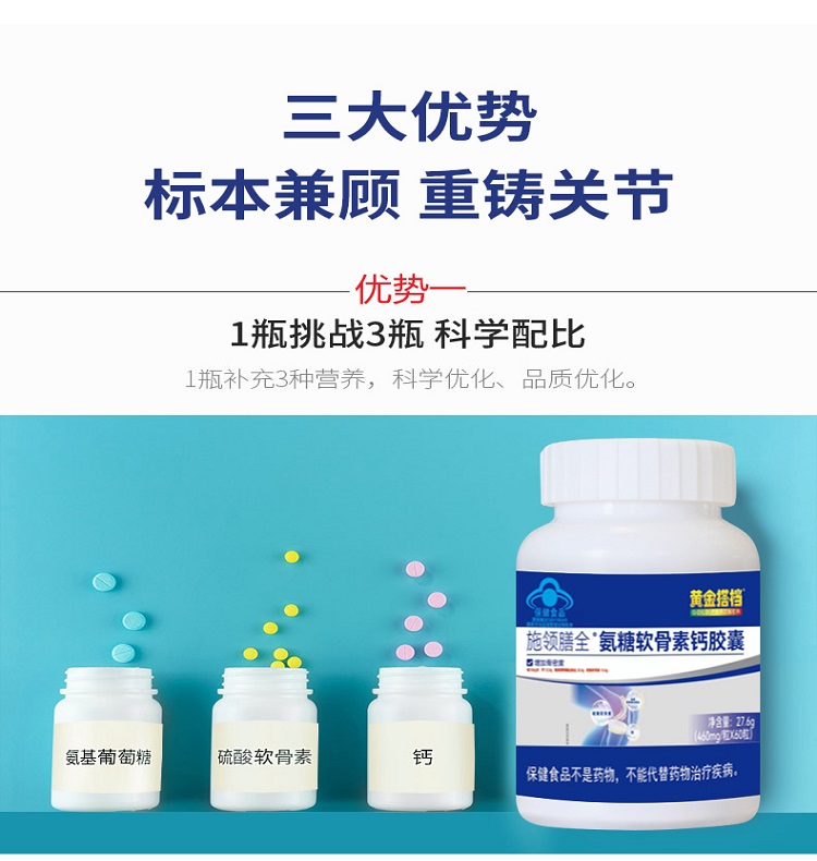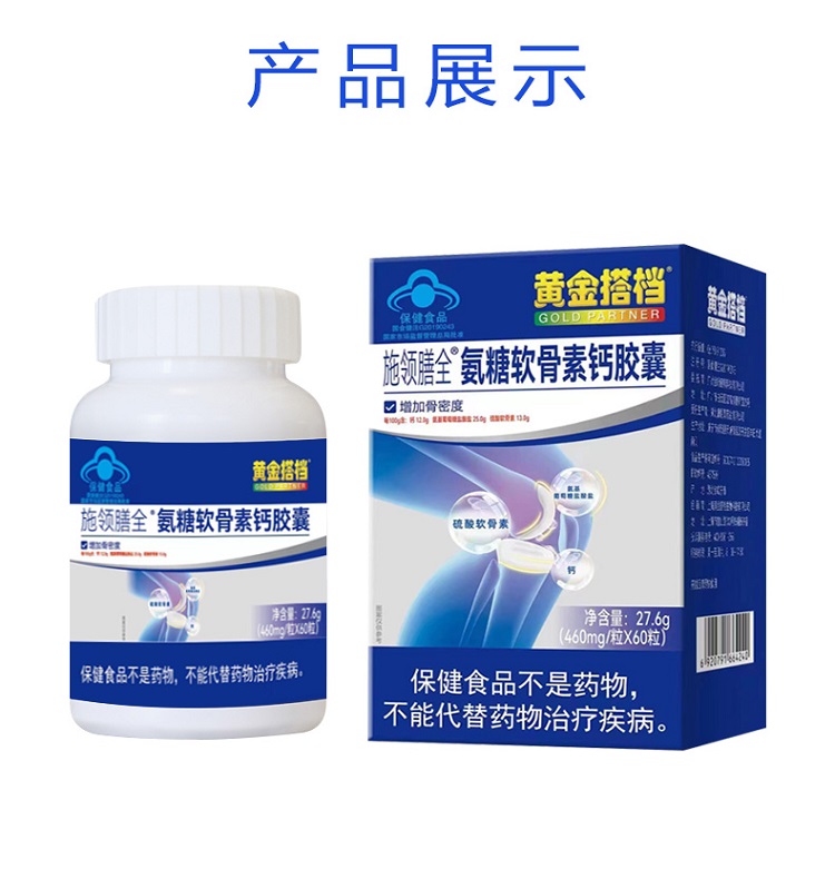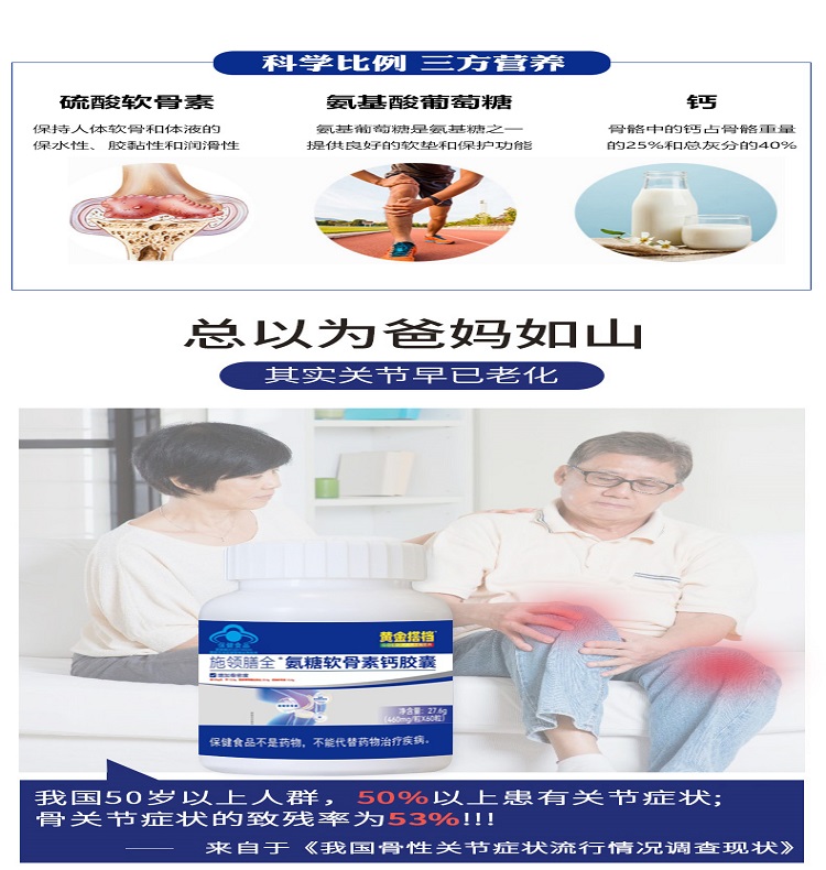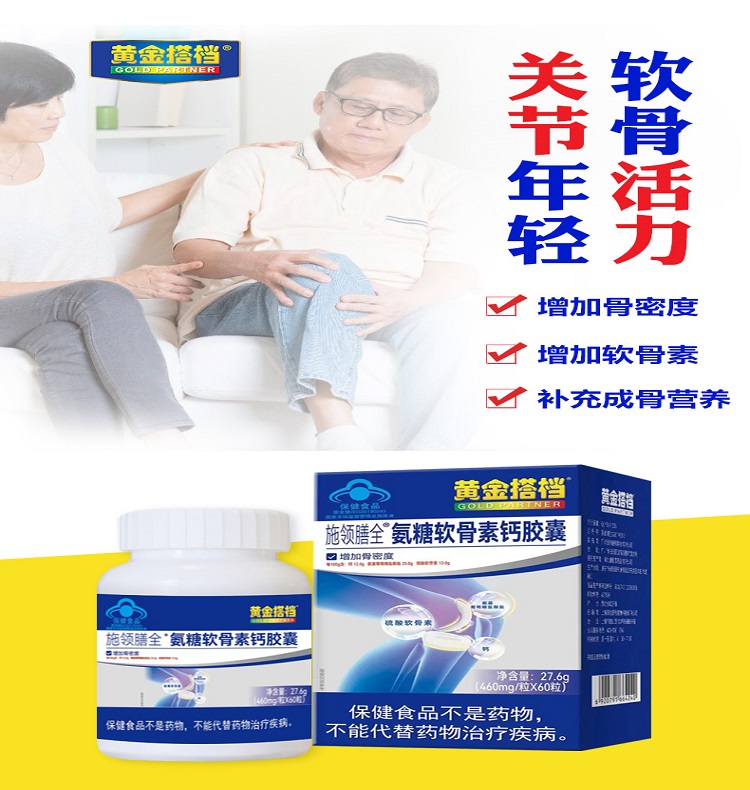【黄金搭档2盒特惠】氨糖软骨素钙胶囊60粒*2中老年成人补钙氨基葡萄糖营养品补软骨增加骨密度