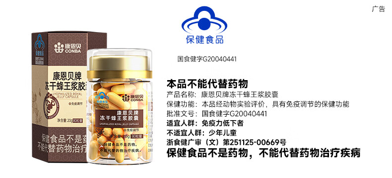 康恩贝 冻干蜂王浆胶囊 80粒*3瓶
