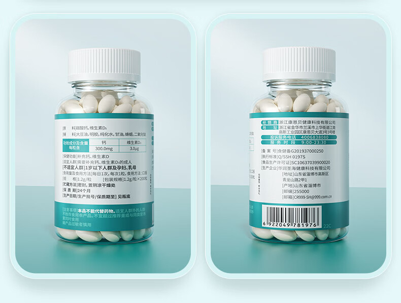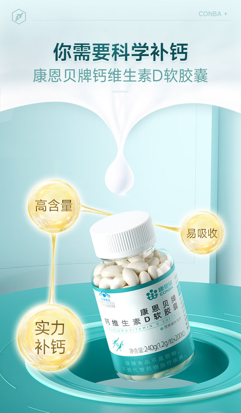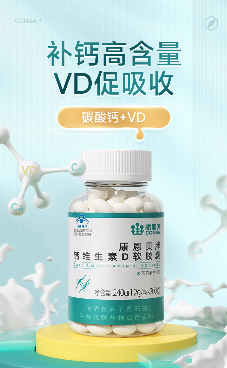 康恩贝 钙片钙D软胶囊1.2g/粒*200粒 金罐蛋白粉 蛋白质粉400g/罐 组合 中秋礼品