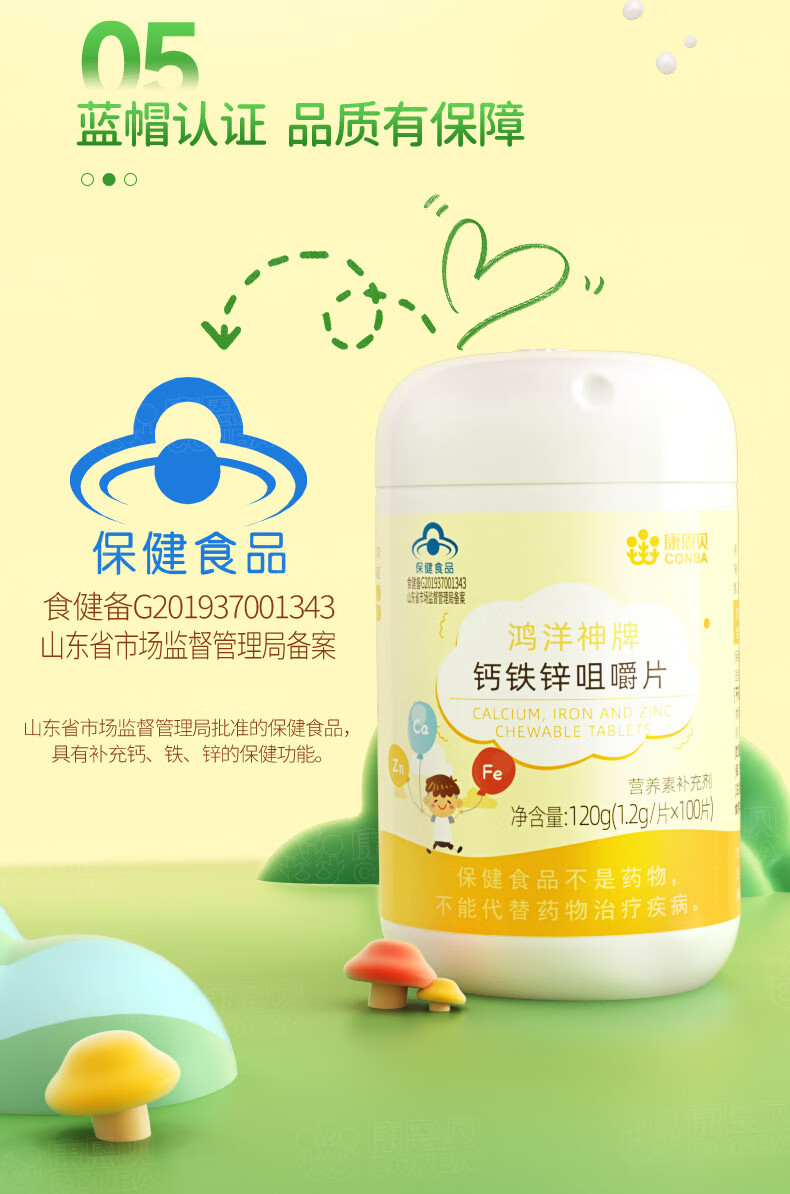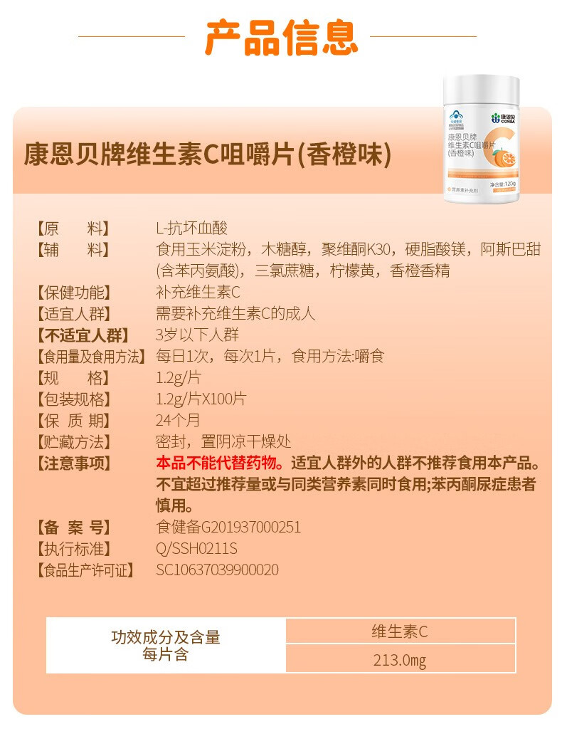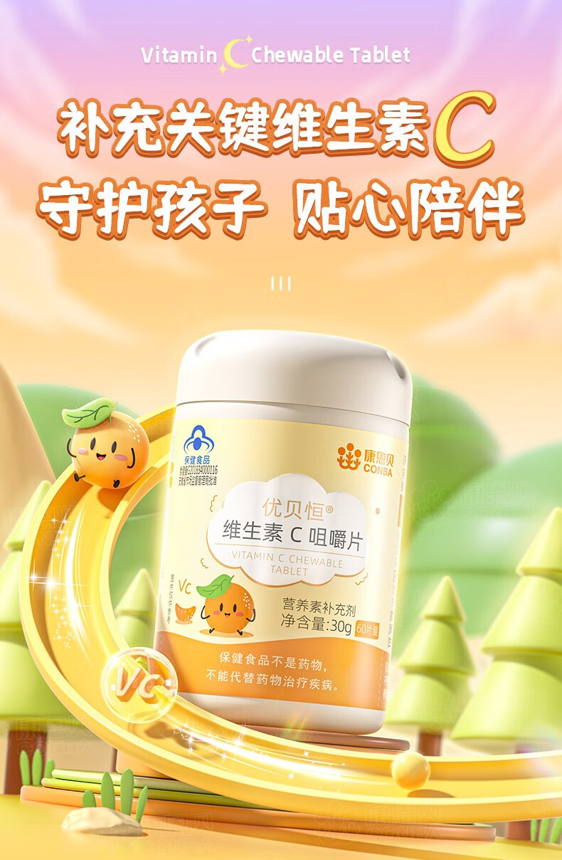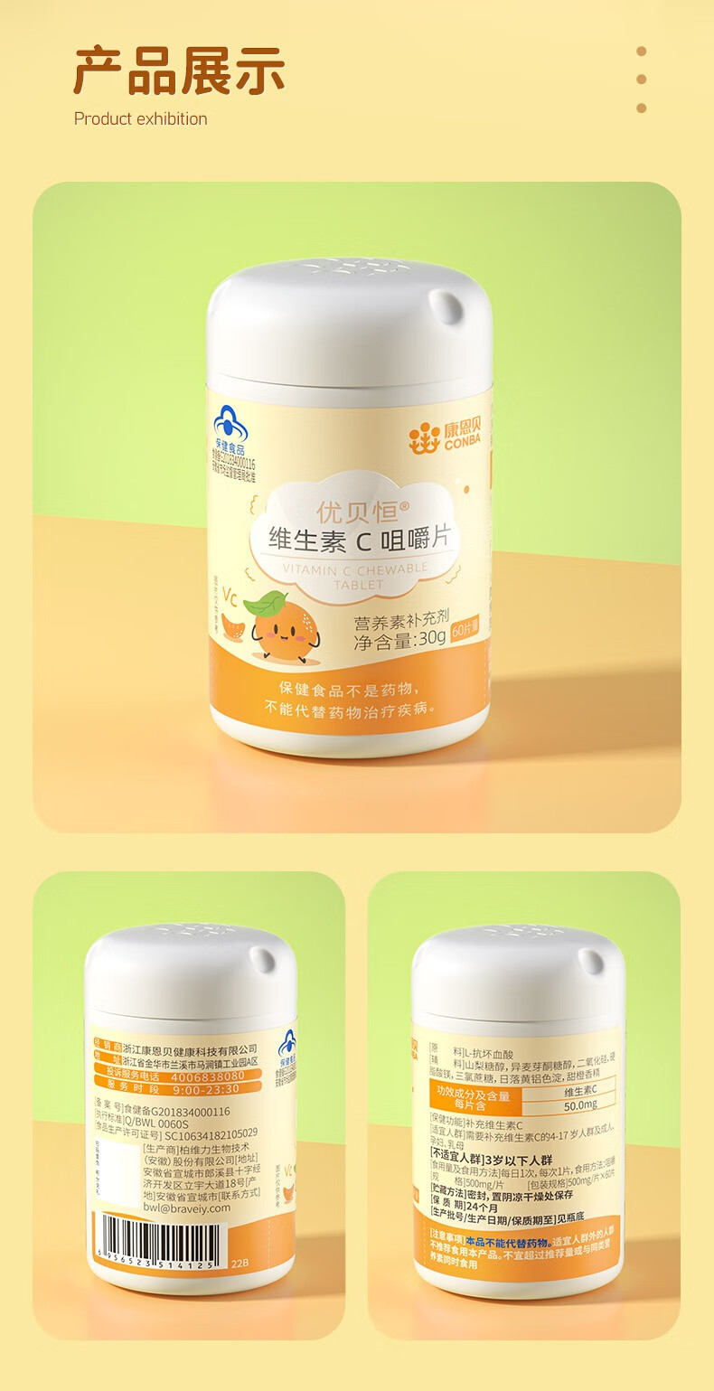 康恩贝儿童VC咀嚼片60片+儿童钙铁锌100片(组合套餐)