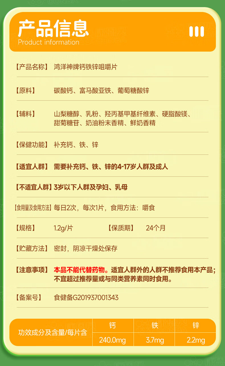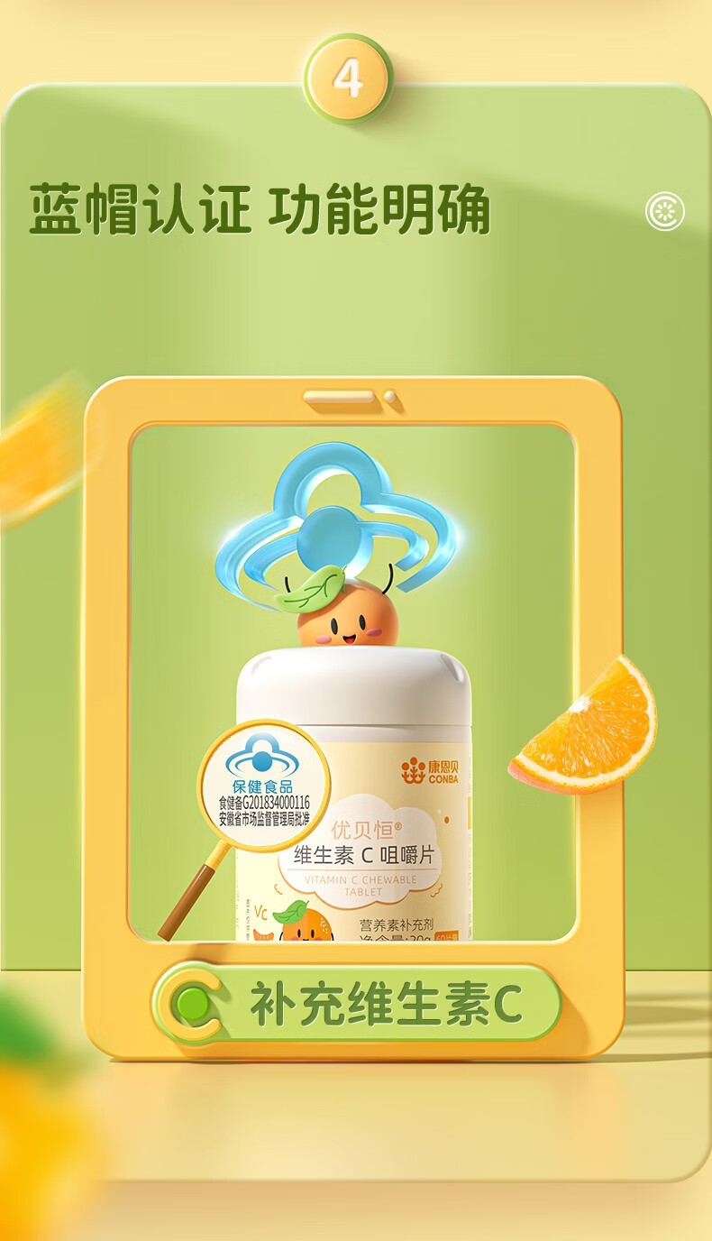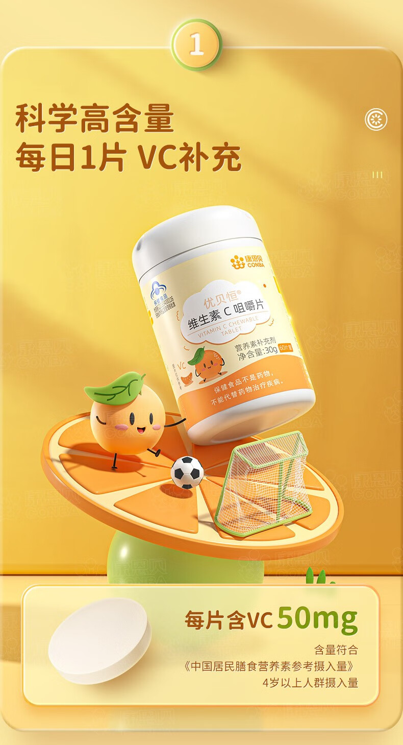 康恩贝儿童VC咀嚼片60片+儿童钙铁锌100片(组合套餐)