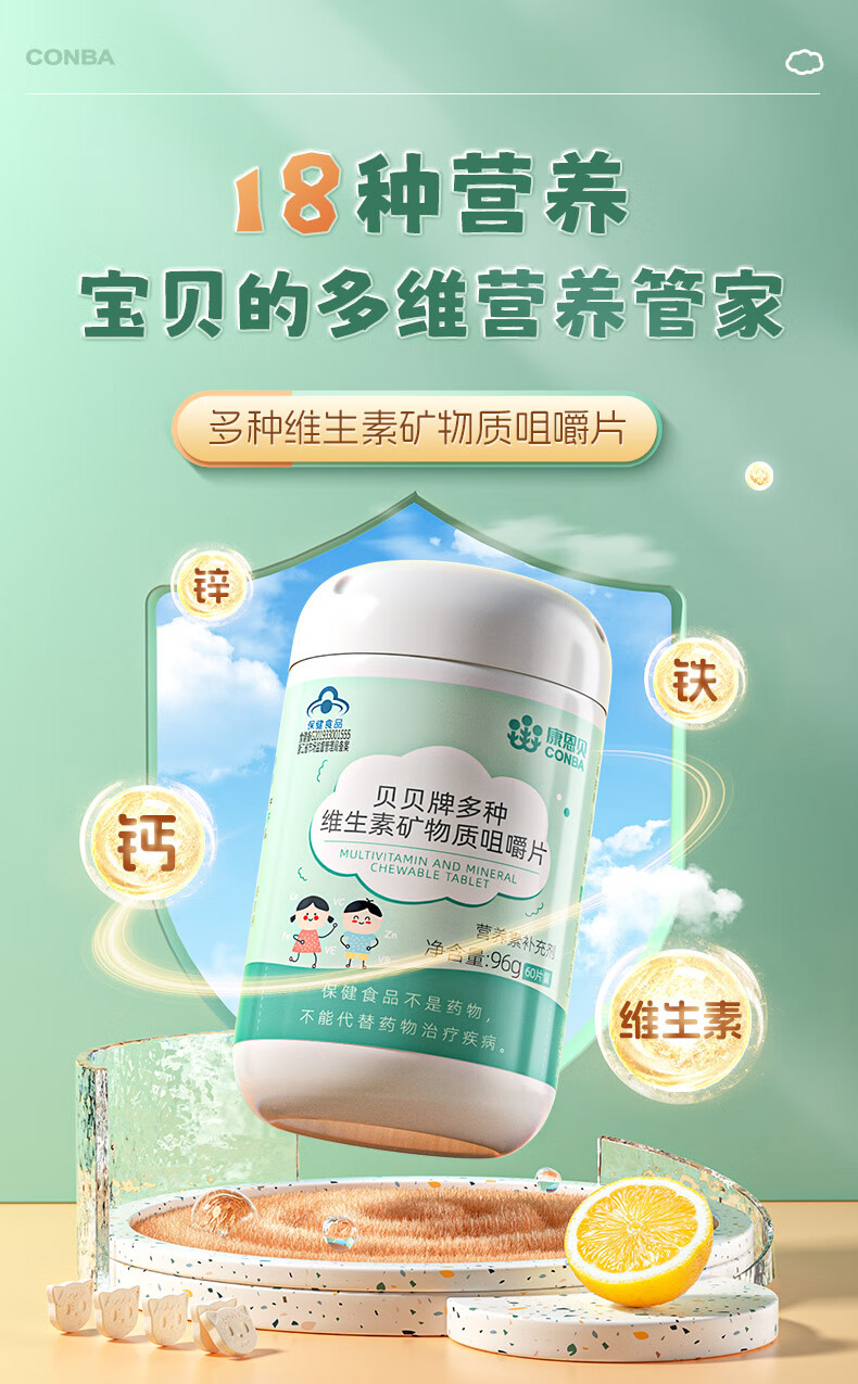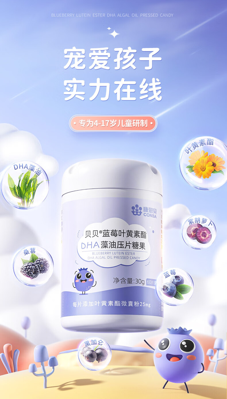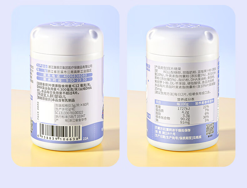 康恩贝学生套餐 儿童多维+DHA叶黄素片(60片+60片)
