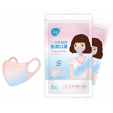 祥禾 一次性使用医用口罩 8只装M号/包(粉蓝色) 河南祥禾卫材有限公司