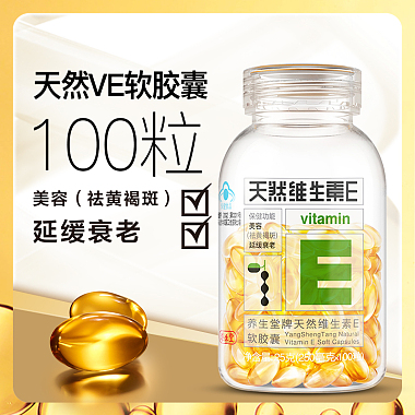 养生堂牌天然维生素E软胶囊 200粒 美容祛斑 延缓衰老 250mg/粒*200粒 杭州养生堂保健品有限公司
