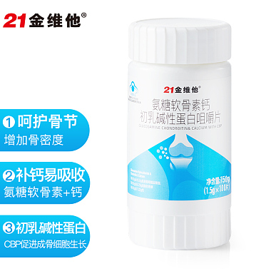 21金维他氨糖软骨素钙初乳碱性蛋白咀嚼片150g(1.5*100片/盒) 150g(1.5*100片/盒) 浙江华方生命科技有限公司