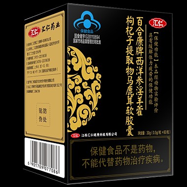 汇仁百合康牌西洋参淫羊藿枸杞子提取物马鹿茸软胶囊0.5g*60粒 0.5g*60粒 威海百合生物技术股份有限公司