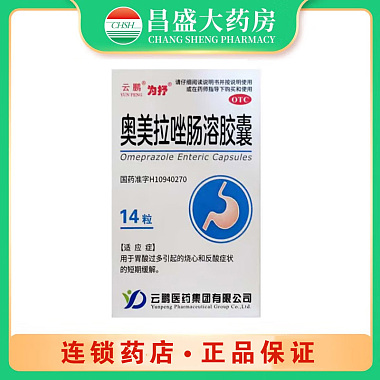 云鹏 奥美拉唑肠溶胶囊 20mg*14粒/瓶 云鹏医药集团有限公司(原山西云鹏制药有限公司)
